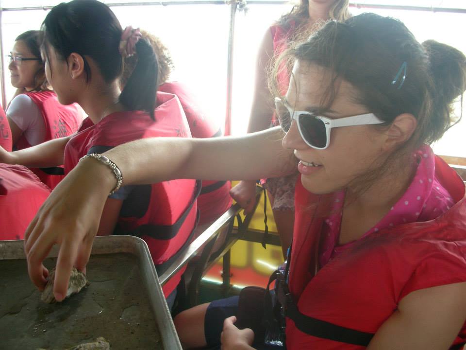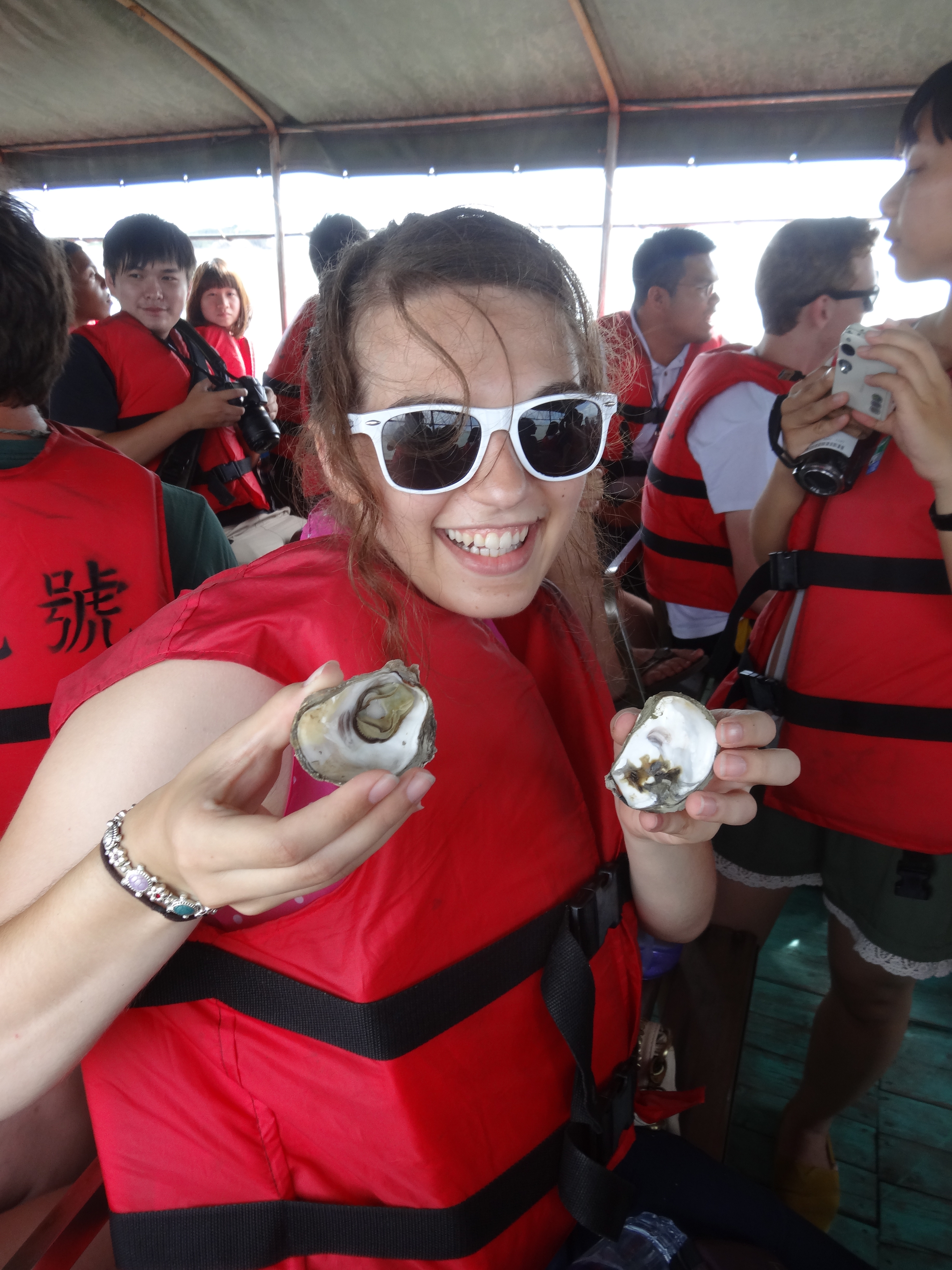 And finally, we went on the Chiku Lagoon Cruise.  We rode a boat across an oyster farm to get to a small island.