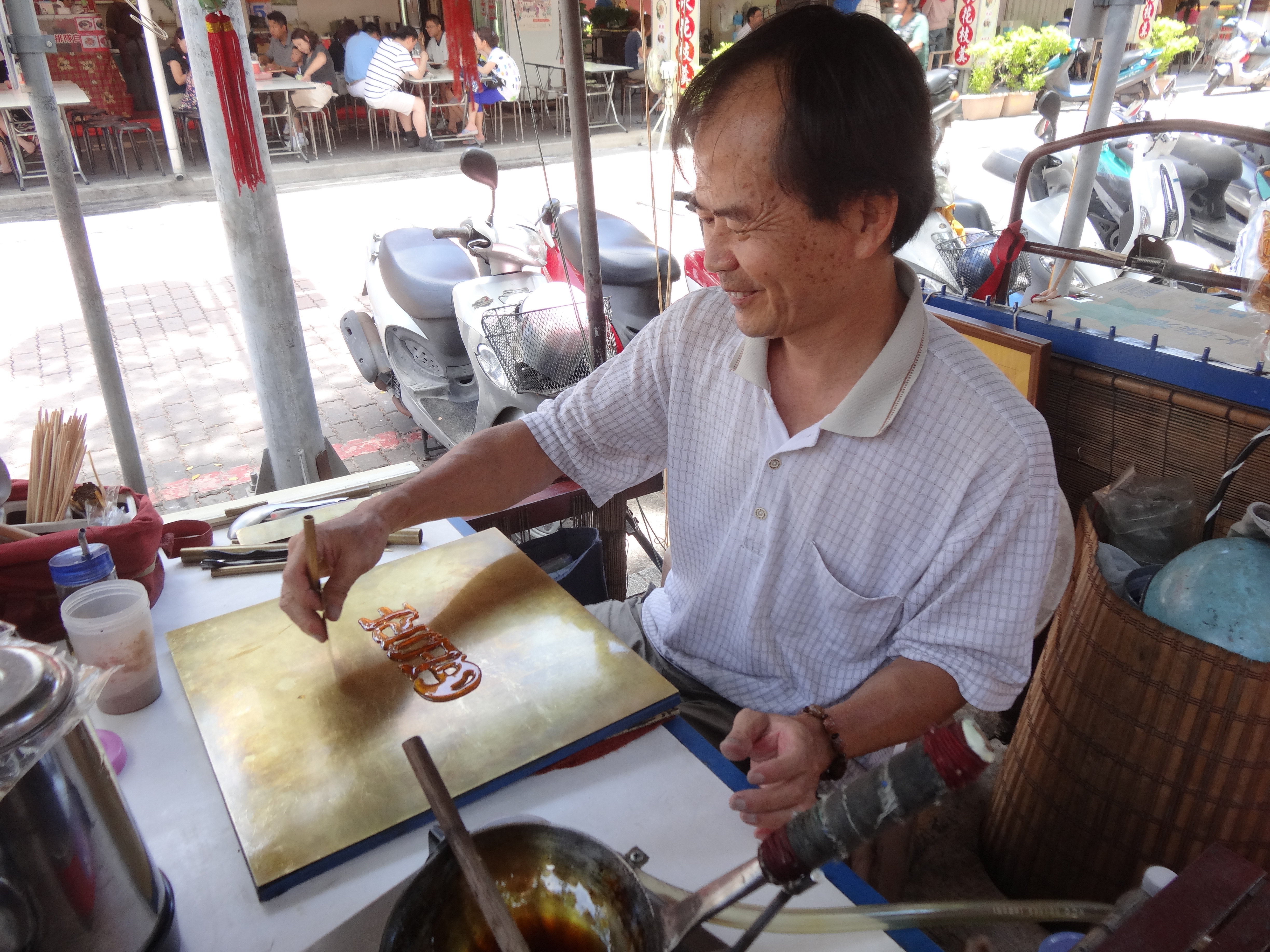 After lunch we watched a street vendor write George’s name in boiled sugar.  The vendor was extremely artistic with the sugar.  He had his Masters degree from a prestigious British university and spoke great English.  We had a fun time talking to him.