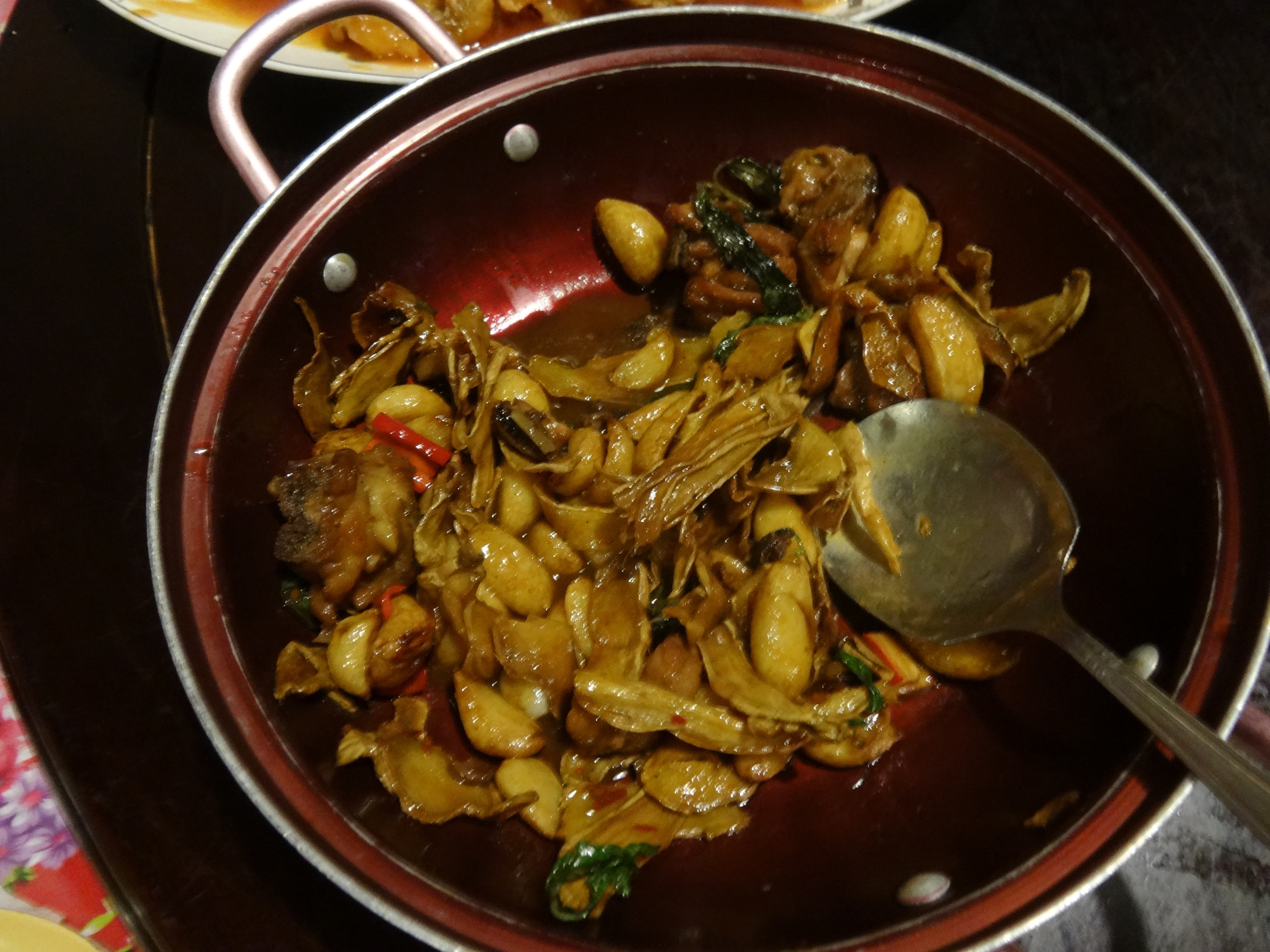 Then we had another amazing meal, with several courses, in a similar style of the welcome dinner— lots of dishes meant to be shared by the table.  I tried pig’s heart!  It didn’t have much flavor, but it was really chewy.