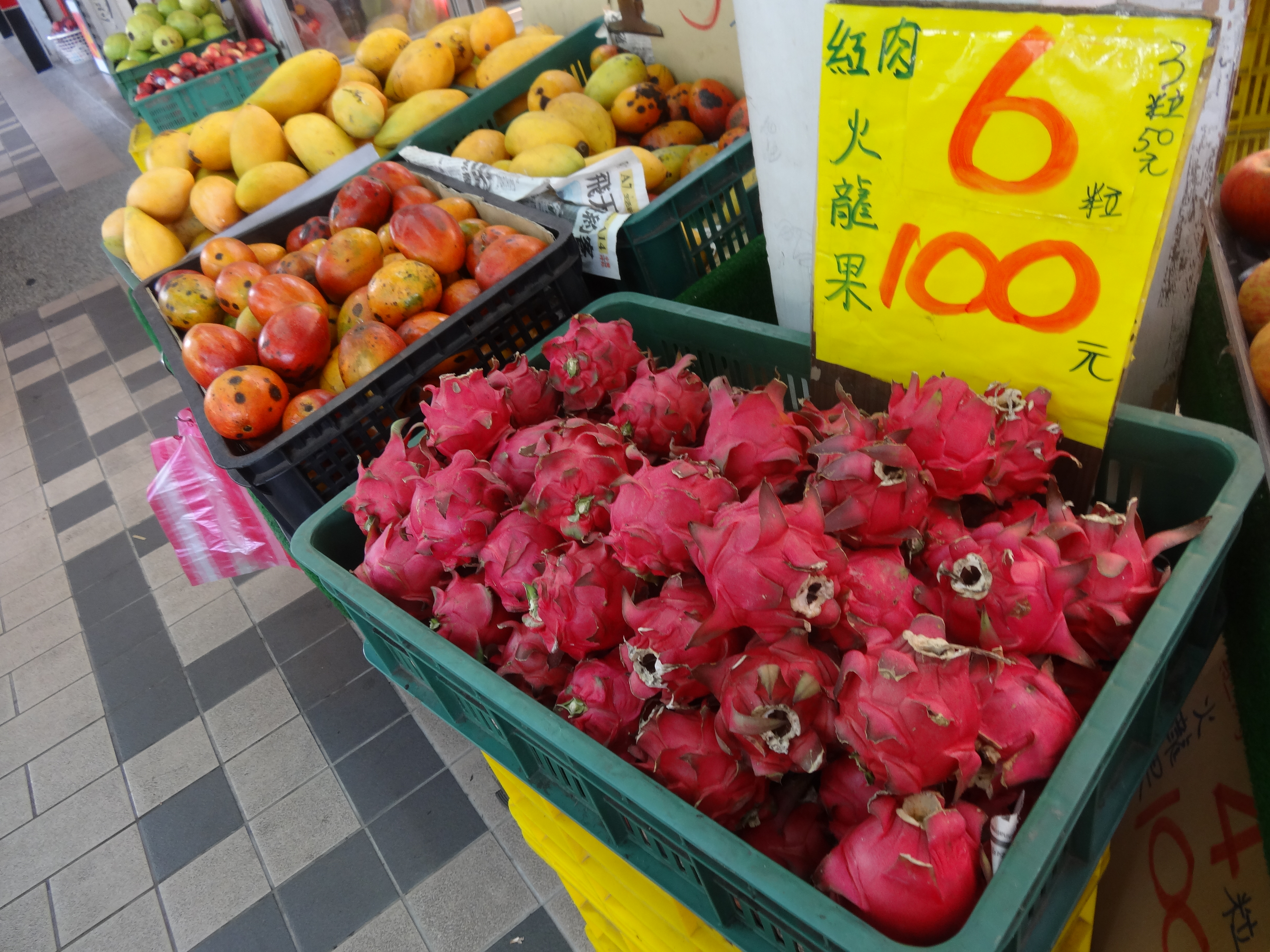 So today is the first day I stayed in for dinner— but no worries.  I’m about to eat the mango I got from a fruit store.  I bought three mangos, a banana, and a dragonfruit (火龙果).  In Mandarin the symbols literally mean “fire” (火), “dragon” (龙), “fruit” (果).  Pretty cool since it kind of looks like a puff of fire from a dragon.  Tammy told me it’s like a red kiwi.  I haven’t gotten a chance to eat it yet.  Five pieces of fruit for 60 NT (2 dollars).  What a deal!